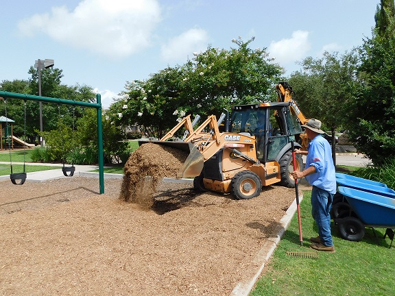 New mulch has been added to our Community Center Park and Highland Horizon Park.