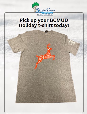 Stop by the Customer Service office in the Administration lobby of the BCMUD Community Center at 16318 Great Oaks Drive, Round Rock to pick up your shirt today!